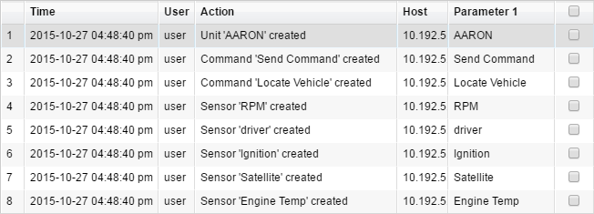 In the monitoring system, you can see the unit log as a table of messages (see below) or as a report. The log is also available in the management system.